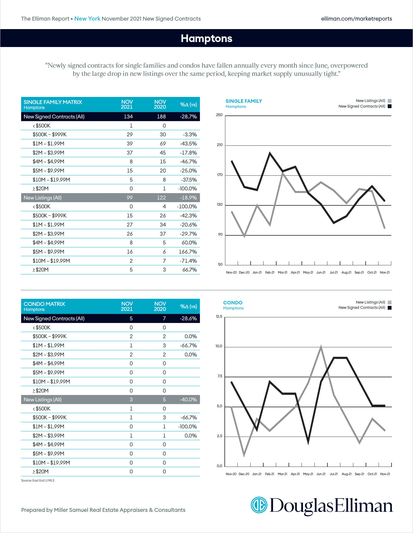 Newly signed contracts for single families and condos have fallen annually every month since June, overpowered by the large drop in new listings over the same period, keeping the market supply unusually tight.