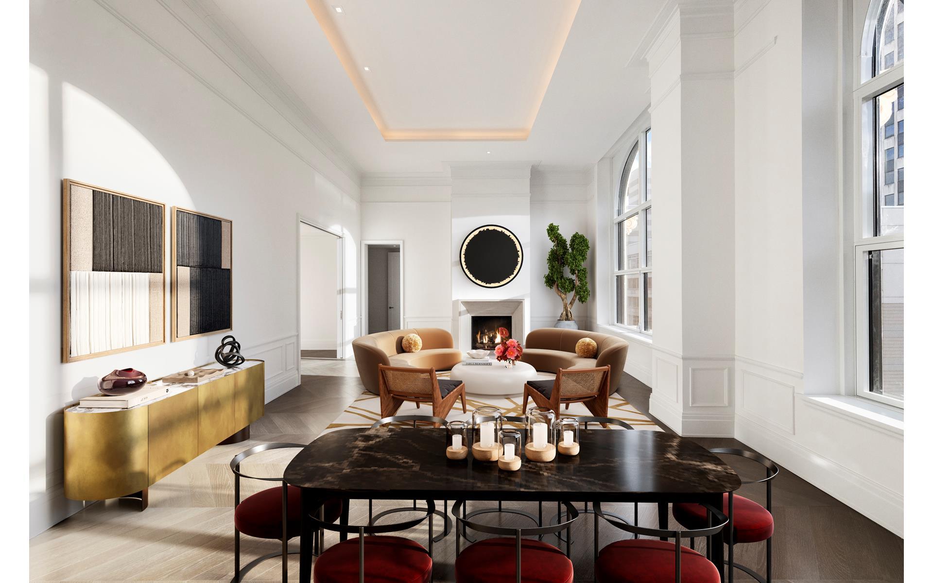 Featuring a discreet drive-in motor reception including valet parking and three luxurious attended lobbies each with its own elevator bank, 108 Leonard offers both the intimate experience of a boutique building and the breadth of over 20,000 square feet of wellness-driven amenities. Award-winning hospitality design firm Jeffrey Beers International has scrupulously restored renowned architect McKim Mead & White's Italian Renaissance Revival landmark; masterfully imbuing a distinctly contemporary yet timeless point of view within Tribeca's most iconic century-old building.